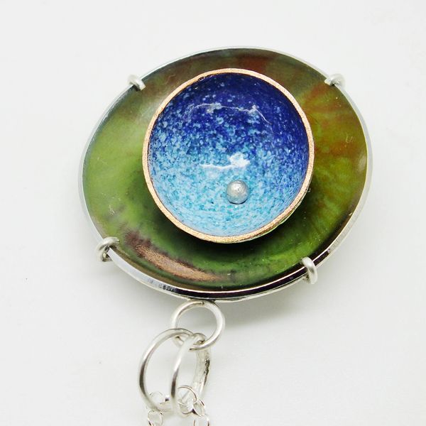 Enamel is applied to copper in layers and fired multiple times in a kiln to create a fusion of colour. Each piece beautifully unpredictable and unique.