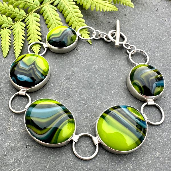 Handcrafted glass cabochons classically set in sterling silver.